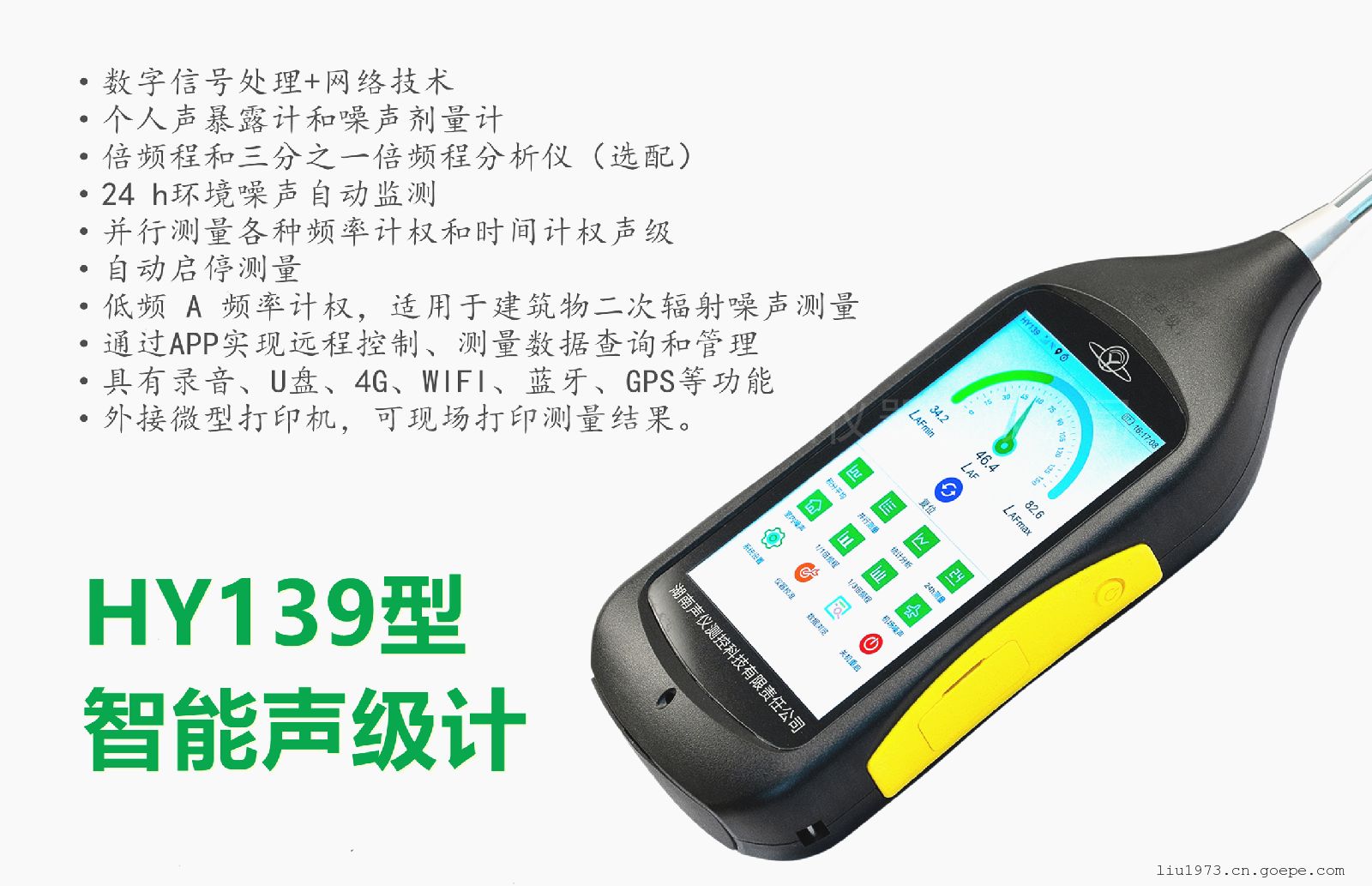 湖南衡仪HY139智能声级计精度等级1级,采用5.0英寸电容型触摸屏,操作方便、功能强大,特殊需求可定制。