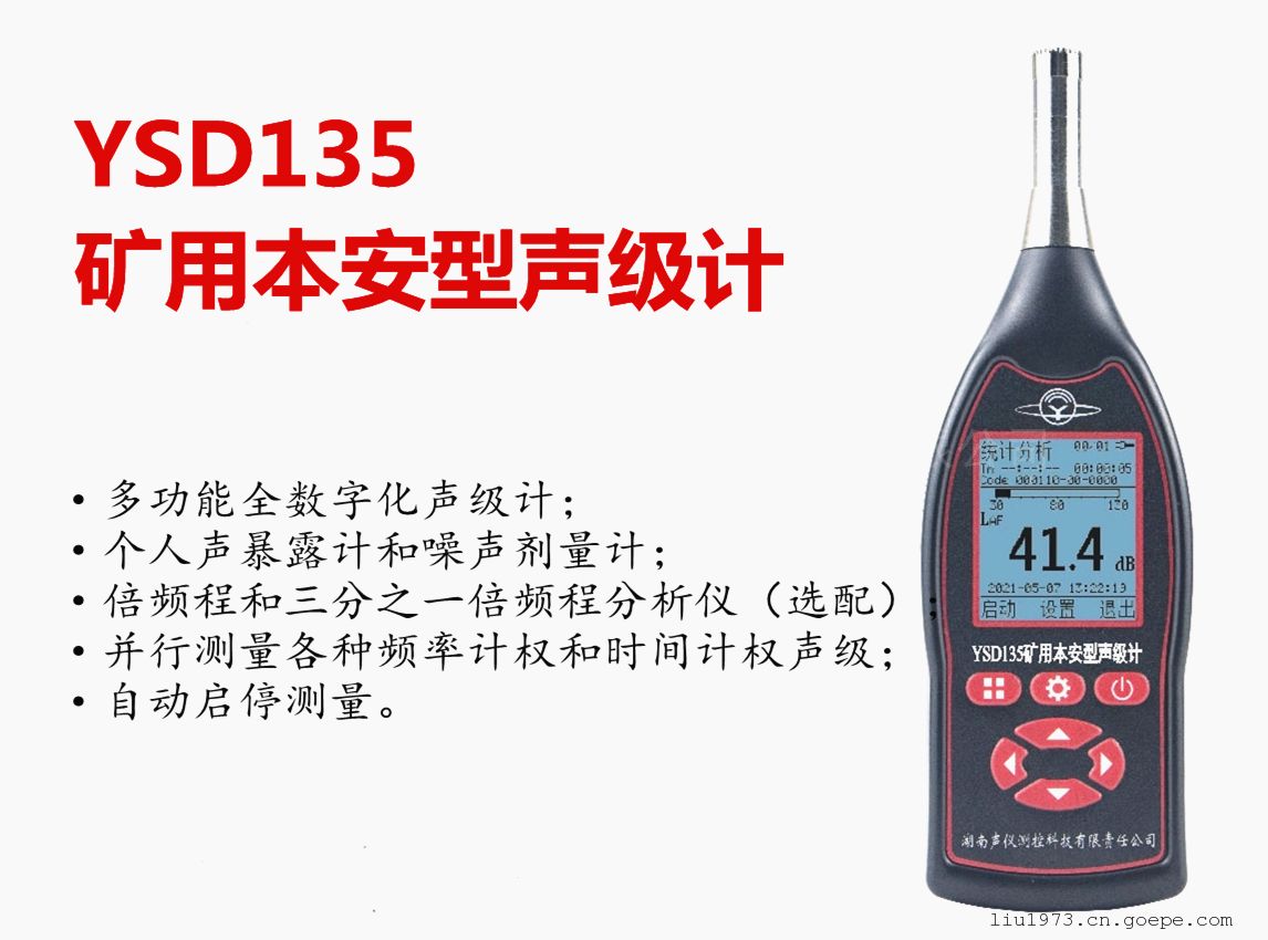 宁波YSD135是衡仪新款矿用本安型多功能声级计(精度等级1级),具有并行测量各种频率计权和时间计权声级以及自动启停测量等功能,测量更加方便。