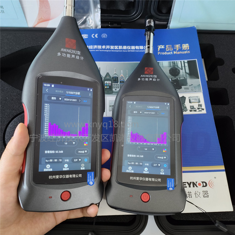 杭州爱华AWA6292型声学频谱分析仪(智能多功能声级计)是一款采用数字信号处理技术和网络技术的新一代噪声测量仪器。潘通(PANTONE)高级金属色,视觉效果更加高端大气稳重,外壳采用工业级ABS+PC材料,坚固耐用;4.3英寸超大电容型触摸屏,界面清新,体验感极佳;模块化设计,用户可以根据需要选购相应的模块,可以同时测量多种评价指标。该仪器在工业机器和产品噪声测量、环境噪声测量、工作场所噪声测量、机场噪声测量、厅堂声学特性测量都有广泛的应用。宁波凯诺供货实拍: