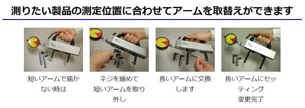 当我们有不同深度的内径(内齿轮内花键等)需要测量时,我们可以选择多台跨棒距检测仪;或一台内齿轮跨棒距测量仪另外搭配几种不同深度的机械臂,通过简单更换机械臂方式完成不同深度的内齿轮测量,更换机械臂示意图如下: