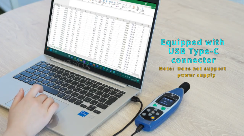 6.通过用电缆连接USB Type-C接口和PC,通过CSV文件取得NL-28测量的数据