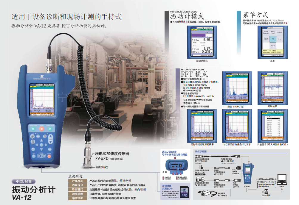 一、VA-12理音RION手持式FFT振动分析仪功能介绍: