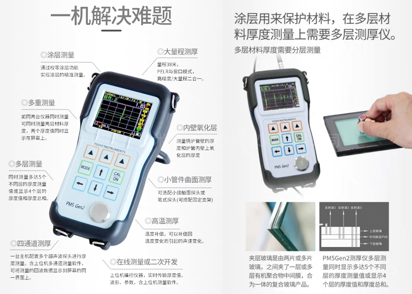 一、复合材料超声波分层测厚仪宇时PM5Gen2简介: