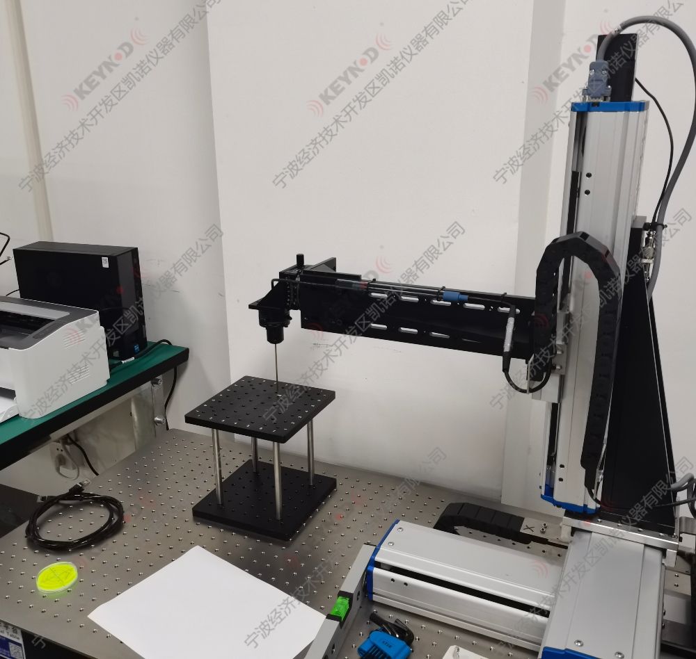 位移模块由多维电控位移台和位移台控制器组成,通过操作上位机软件给控制器下命令,控制器就根据命令带动电控位移台各个轴运动,这个电控位移台的参数(台面大小、运动轴长度、运动方式、多少维度)用户可定制,即实现在允许范围内的各个角度、各种形状的扫描。