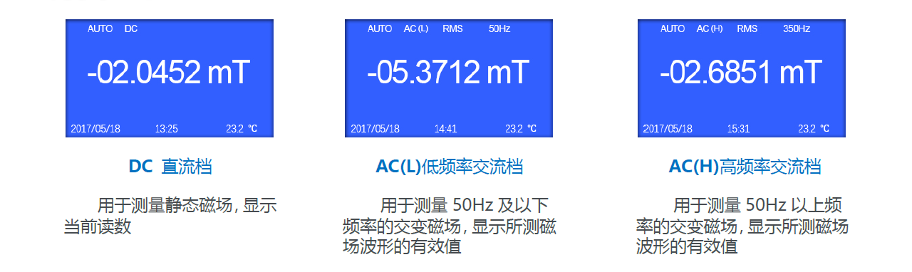 1.量程:±10T/±100KG(常规)600μT/6Gs(弱磁探头)